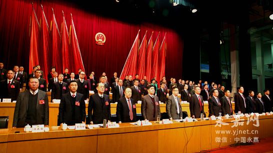 上午八時三十分,縣十五屆人大四次會議在雄壯的國歌聲中開幕。